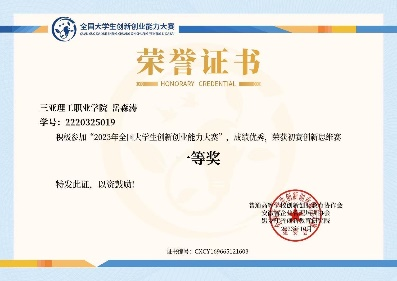 个人荣誉:优秀共青团员,1+x专业证书,2023年全国大学生创新创业能力大赛一等奖,广东省全国大学生数据分析科普竞赛一等奖